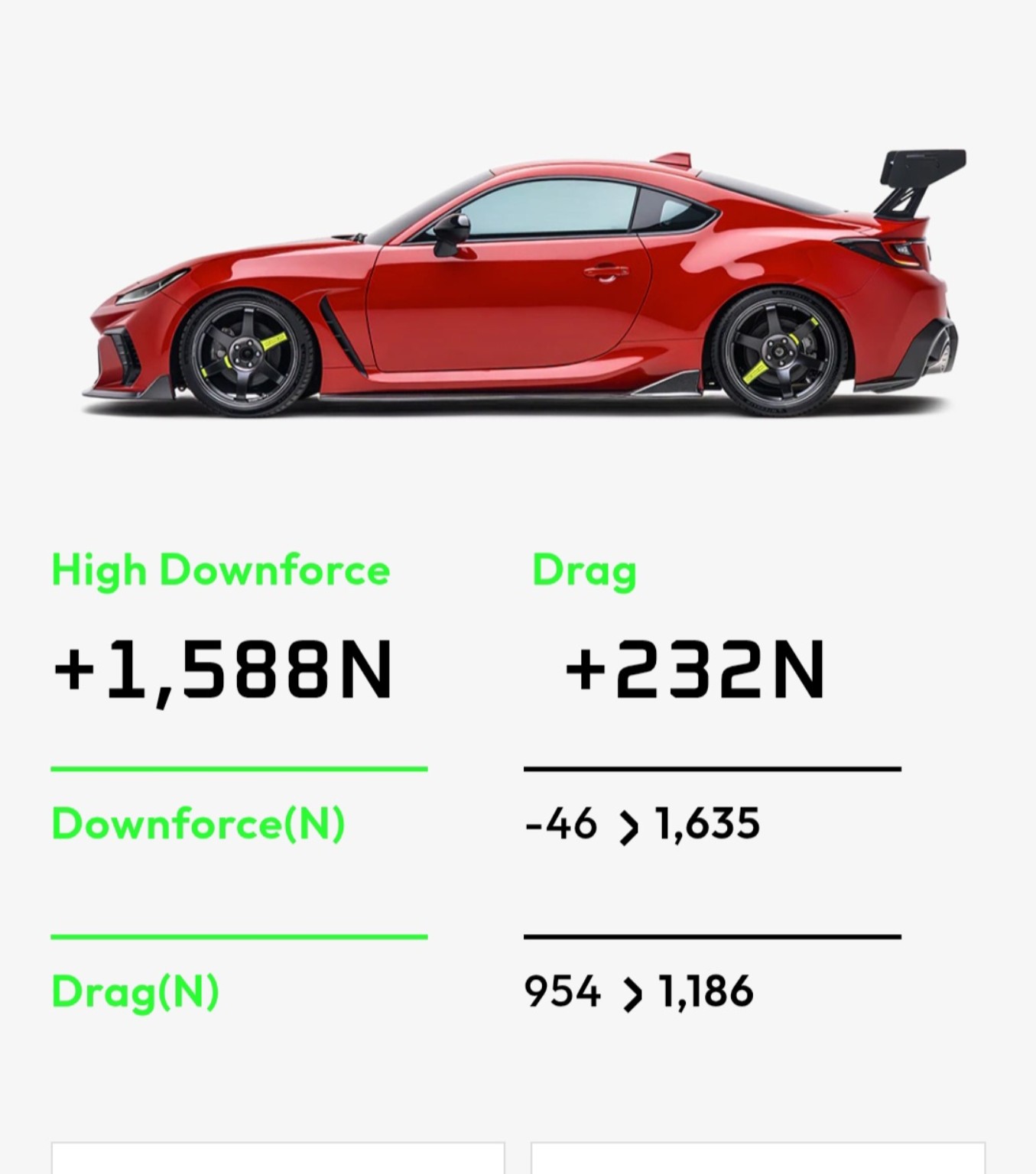 الصورة المعروضة تقدم مثالا رقميا لهذه المفاضلة حيث يظهر خيار ضغط سفلي عال مع قيم بالوحدة نيوتن وتوضح الأرقام أن الضغط السفلي ارتفع بمقدار 1588 نيوتن بينما ارتفع السحب بمقدار 232 نيوتن كما تظهر قيم قبل وبعد لكل من الضغط والسحب وهذا يشرح أن زيادة التماسك الهوائي لا تأتي مجانا بل ترافقها زيادة في مقاومة الهواء التي يمكن أن تقلل السرعة القصوى أو تضعف التسارع عند سرعات مرتفعة لأن المحرك سيحتاج قدرة أكبر لتجاوز مقاومة الهواء |